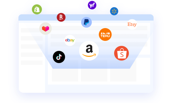 支持一台电脑轻松管理亚马逊、eBay、esty、沃尔玛、Wish等50多个电商平台,多平台、多品牌、多设备共享店铺环境。