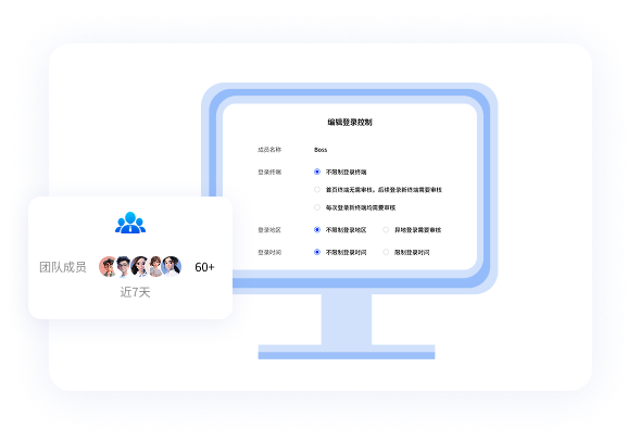 角色分级授权\设备登录控制\设备登录时间控制,多人异地协同办公免费便捷的团队系统,支持多人同时在线异地协同管理店铺,电脑移动多端操作店铺授权,设备审核,团队成员轻松管理。